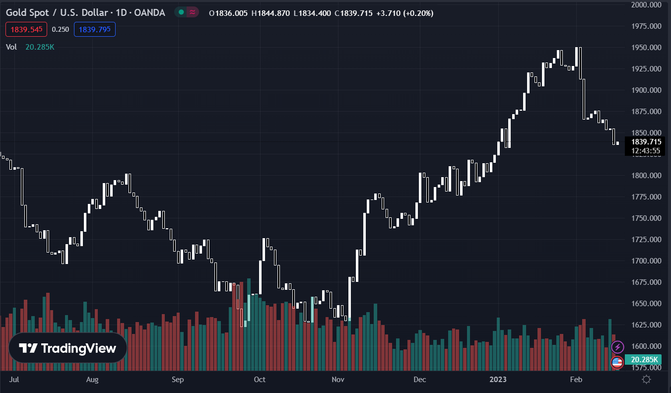 Giá vàng giao ngay tiếp tục suy yếu, hiện đang ở mức $1835.