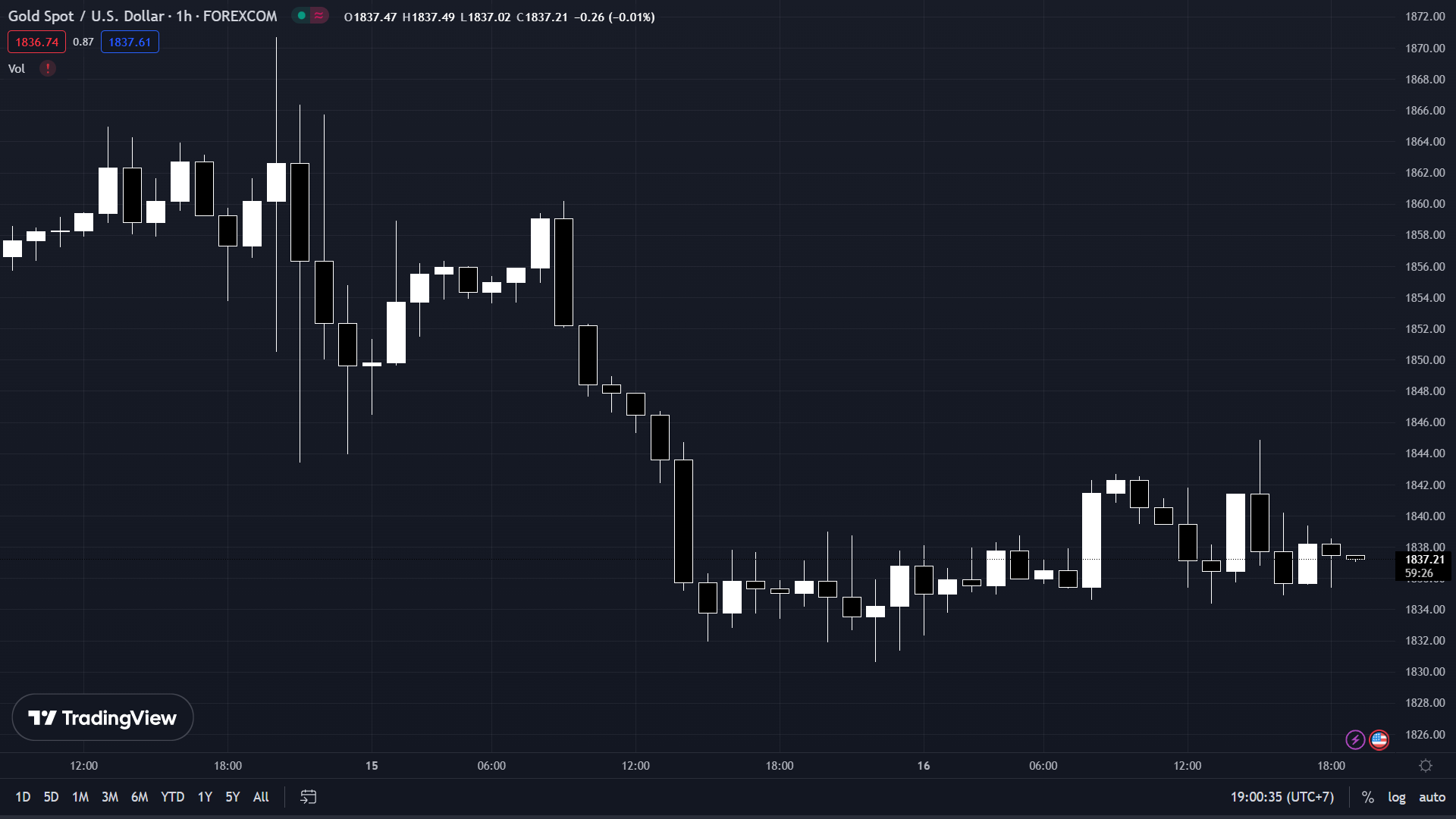 Sau khi giảm về mức $1,835/ oz đầu phiên Âu, XAUUSD tăng 0.2%, hiện ở $1,839.71