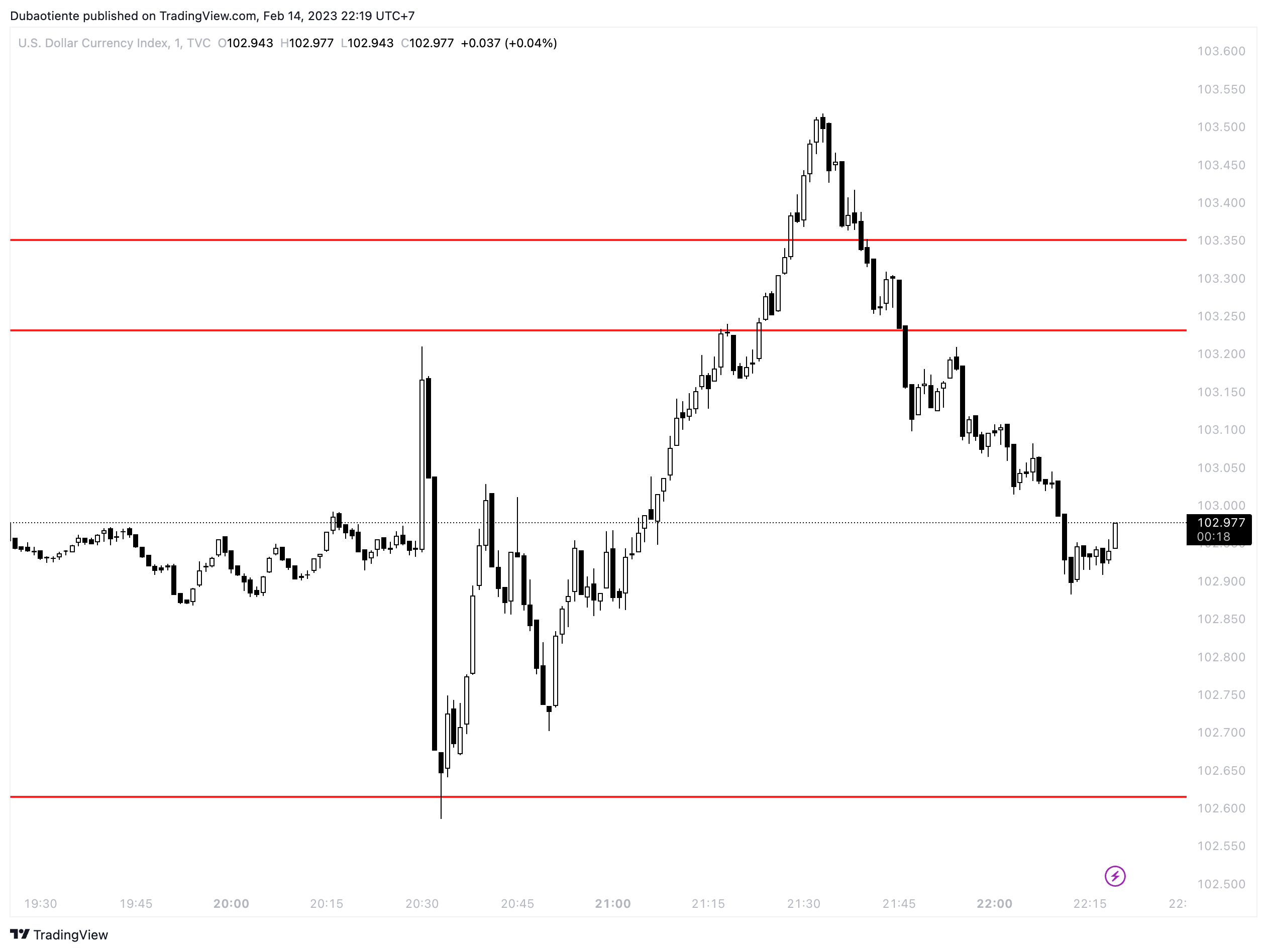 Nhìn chung hôm nay thị trường đã biến động rất mạnh, liên tục là những pha quét 2 chiều, nhưng DXY vẫn đang kẹt trong biên độ 102.5/103.5.