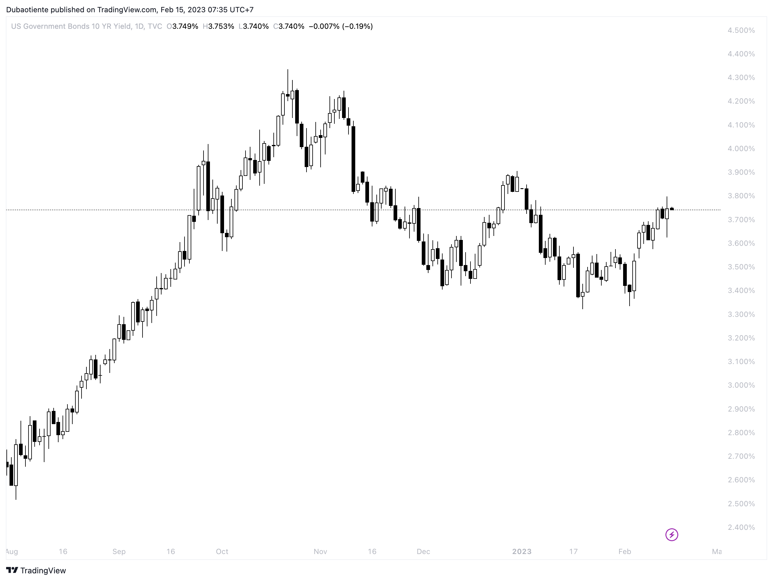 Lợi suất trái phiếu chính phủ Mỹ chốt phiên tăng 4bp, có thời điểm tăng tới 10bp lên 3.8%, mức cao nhất kể từ đầu tháng 1/2023