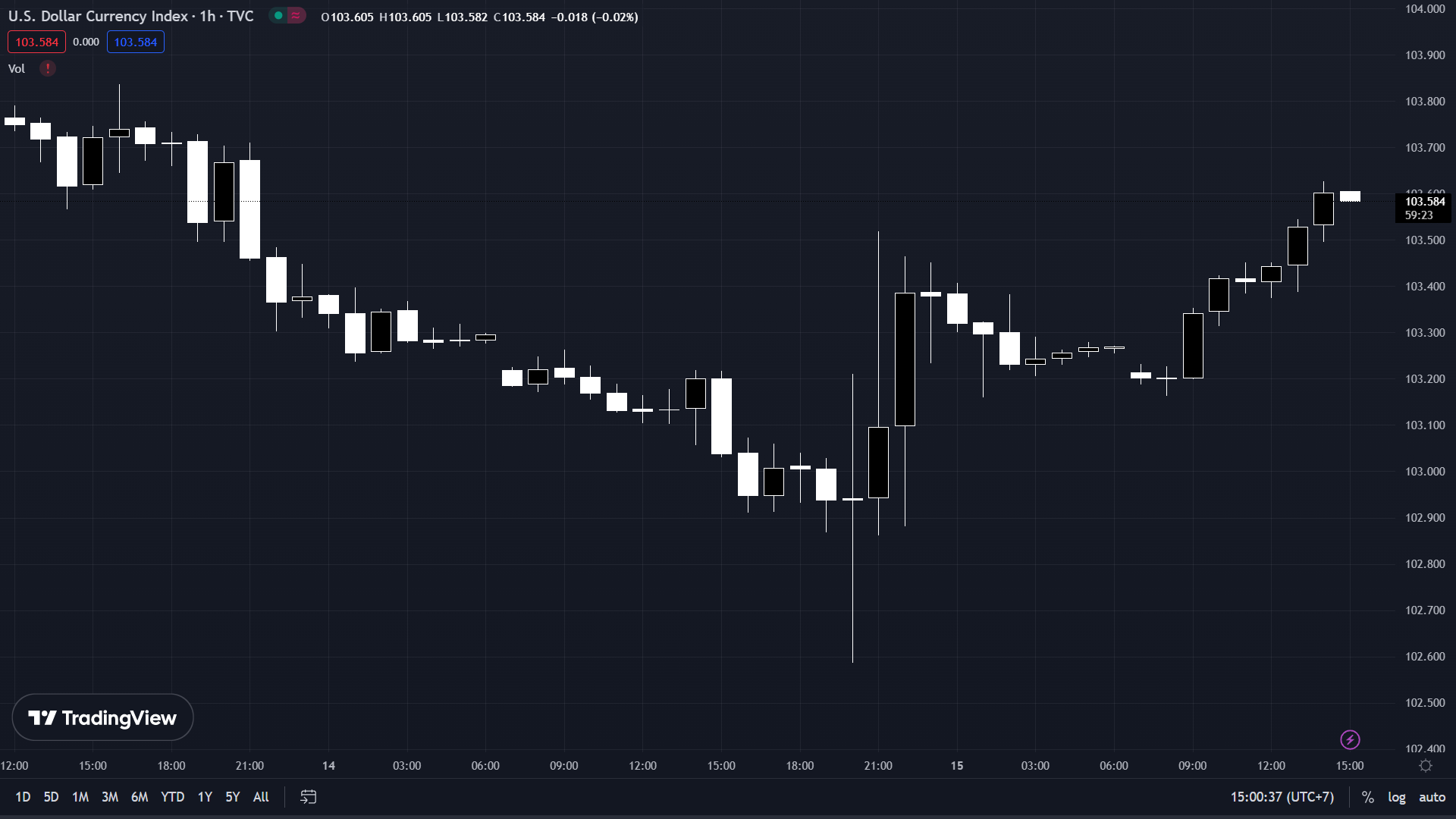 DXY giảm ngay khi bước vào phiên giao dịch châu Âu và hiện ở mức 103.584.