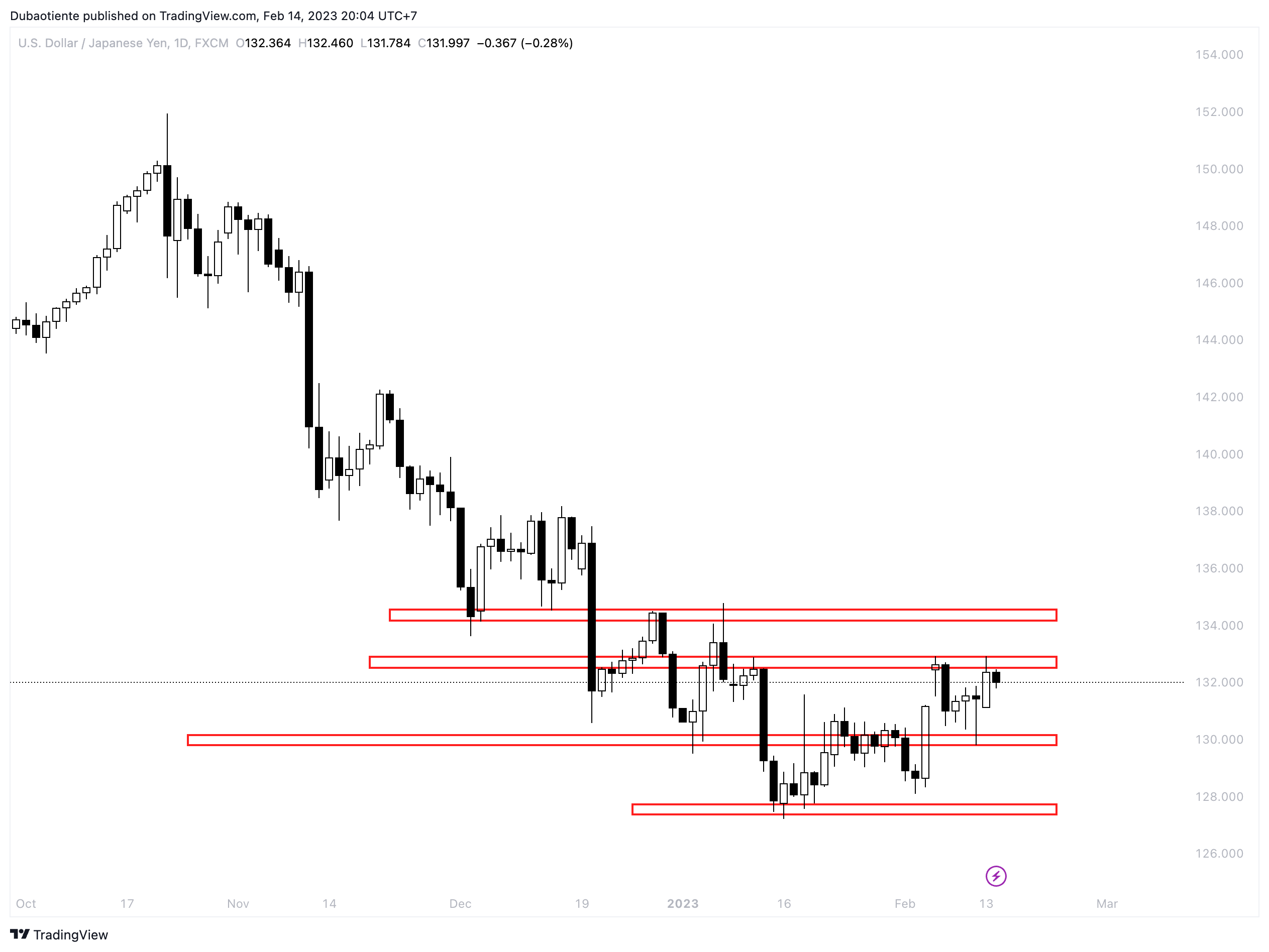 Trên khung D1, chỉ số DXY đang hình thành nến con xoay, giá hiện tại gần như bằng với giá mở cửa. USD đã hồi phục gần như toàn bộ đà tăng trong ngày khi thị trường tiếp tục tiêu hóa báo cáo CPI. Trong số các đồng tiền, AUD và NZD từ tăng đã chuyển sang giảm so với USD, EUR và GBP thoái lui phần lớn đà tăng, và USDJPY tăng hơn 100 pip từ đáy.