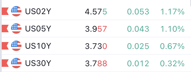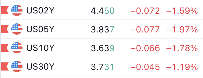 Lợi suất trái phiếu chính phủ Hoa Kỳ các kỳ hạn đồng loạt giảm trước thềm công bố CPI.