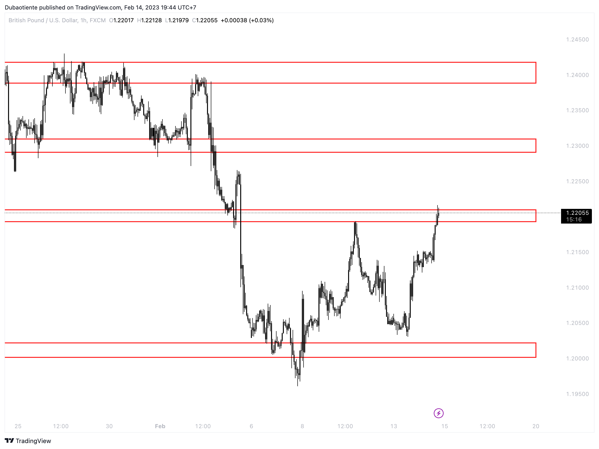 Thị trường sẽ tiếp tục chờ đợi báo cáo CPI Mỹ. Một báo cáo vượt kỳ vọng có thể giúp GBPUSD dễ dàng kiểm tra 1.2200, với kháng cự đáng chú ý tiếp theo là 1.2290/00.