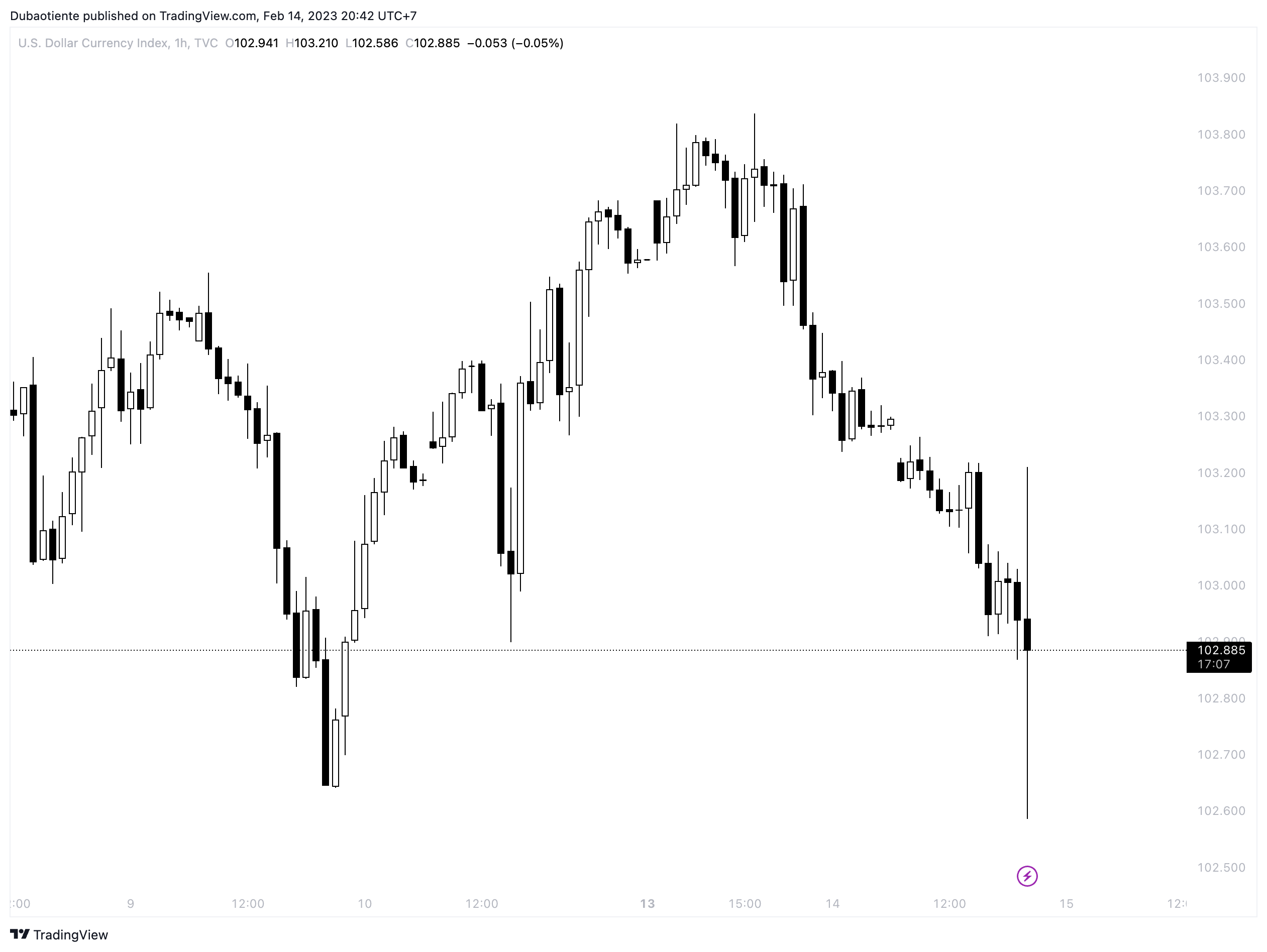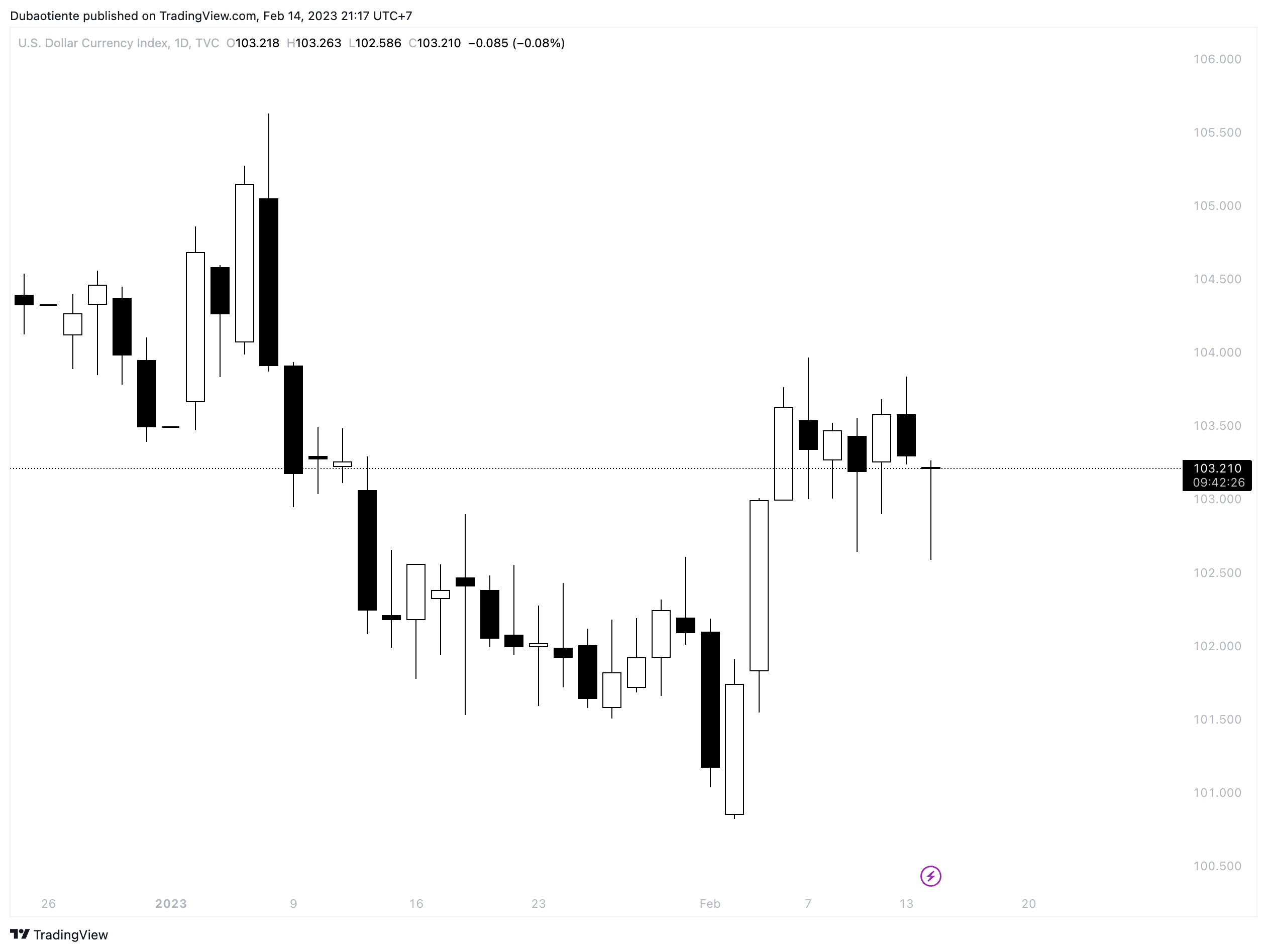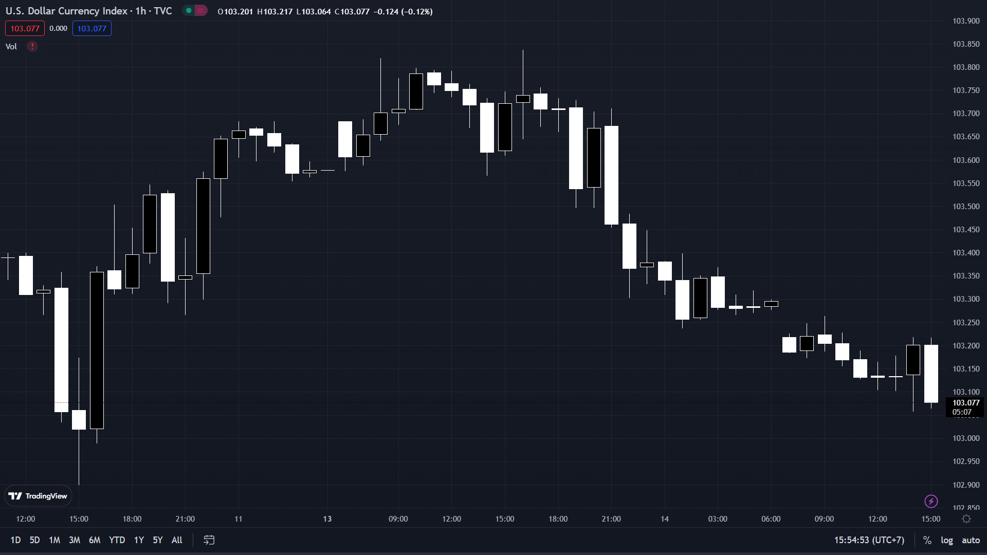 DXY gặp áp lực trước giờ công bố dữ liệu CPI Mỹ và hiện ở mức 103.077.