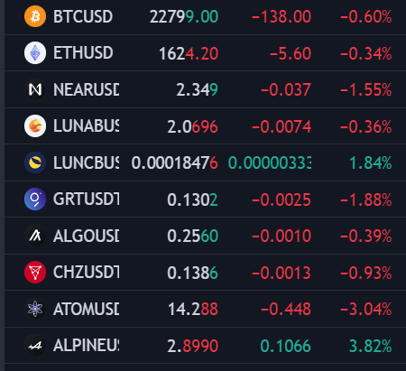 BTC suy yếu, giao dịch tại 22,767 USD.