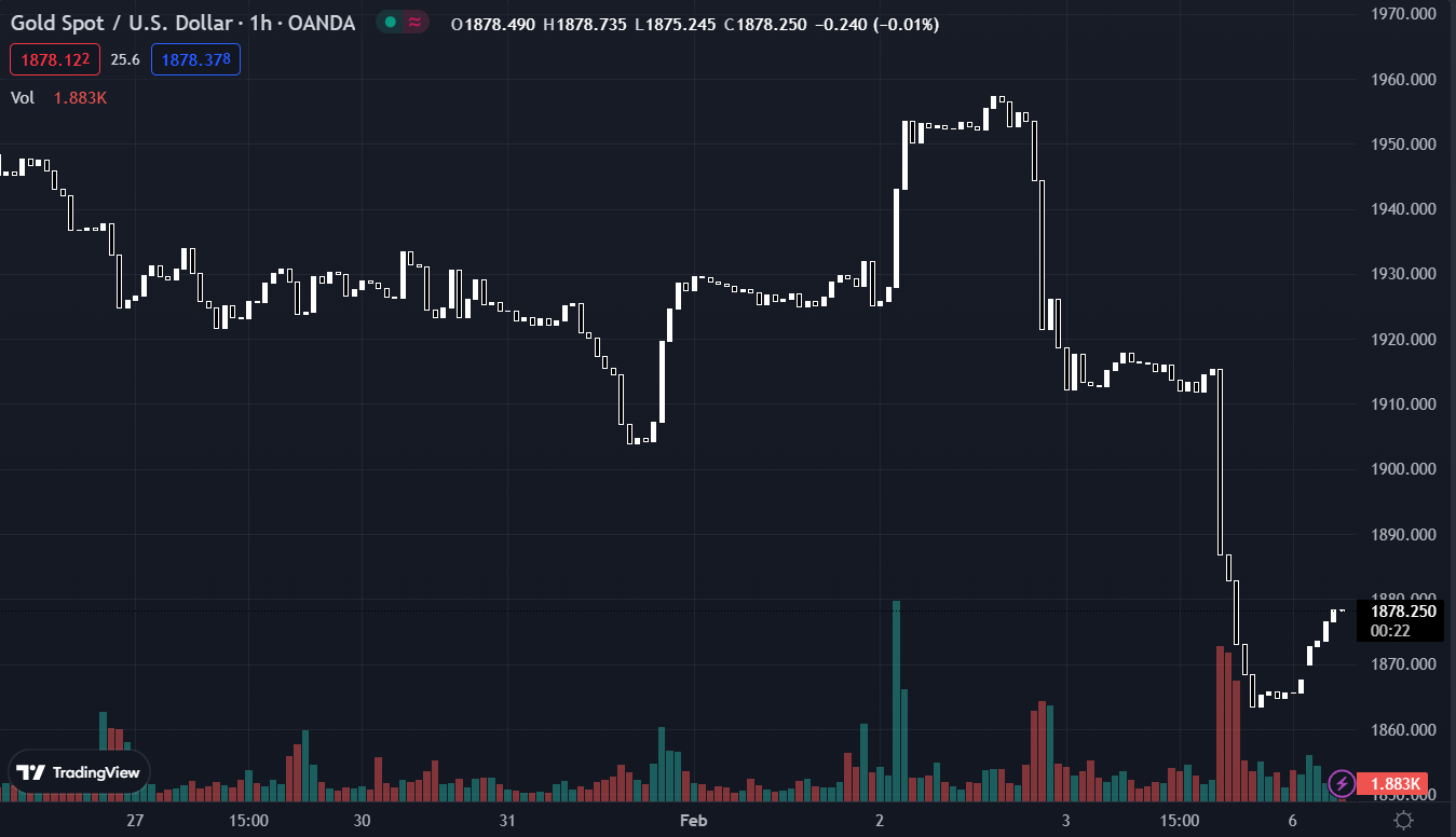 Sau khi giảm trước sức ép từ cả USD và lợi suất tăng, XAUUSD hiện tăng 0.67%, hiện ở $1,878.250/ oz