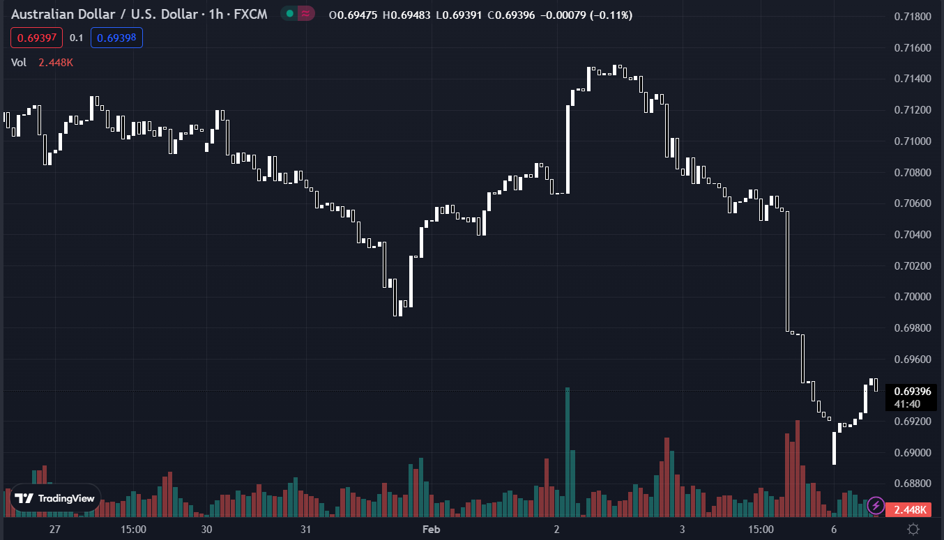 AUDUSD tăng trở lại bất chấp căng thẳng leo thang giữa Hoa Kỳ và Trung Quốc sau sự kiện khinh khí cầu. AUDUSD hiện tăng 0.27%, ở mức 0.69397