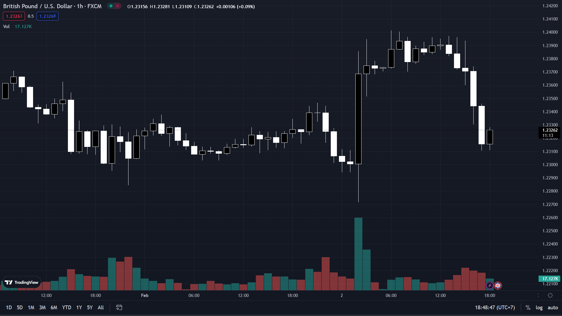 GBP/USD quay đầu giảm sau quyết định của BoE và hiện ở mức 1.23034.