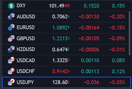USD phục hồi trong phiên với EUR/USD, AUD/USD, GBP/USD đều giảm trong khi USD/CHF và USD/CAD tăng mạnh hơn. USD/JPY tiếp đà giảm, hiện ở 128.60.