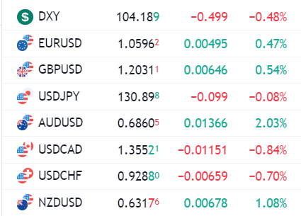 DXY đã phá xuống dưới mốc 104 và hiện đang ở 103.97.