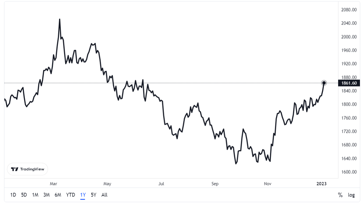 XAU/USD hiện giao dịch tại 1860.65, tăng 1.17%.