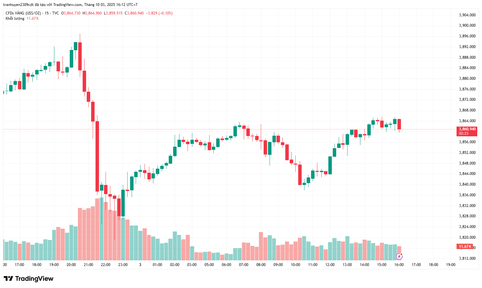 Giá vàng tiếp tục giao dịch quanh 3,860 USD/oz nhờ kỳ vọng Fed cắt giảm lãi suất và rủi ro từ việc chính phủ Mỹ đóng cửa.