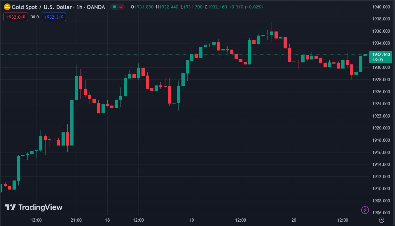 Vàng tăng vượt mức $1,932