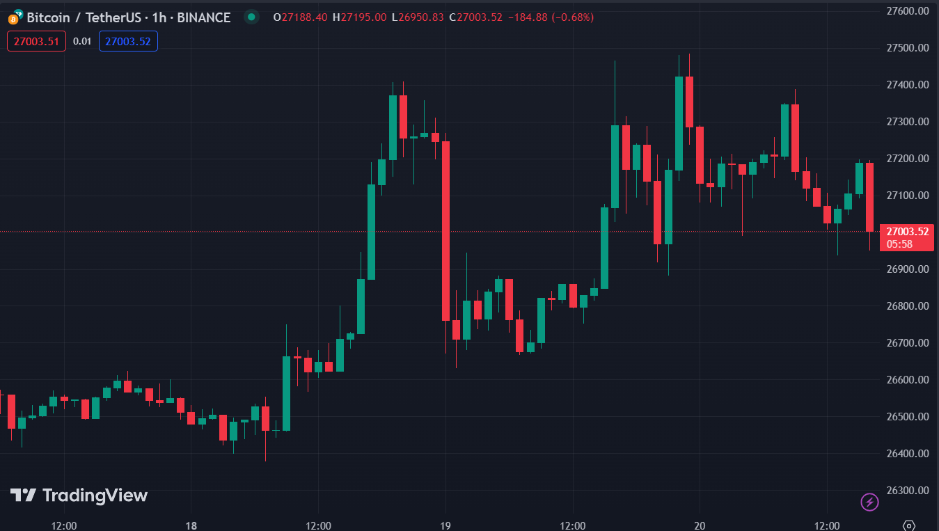 • Bitcoin giảm 0.3%, hiện ở 27,089 USD