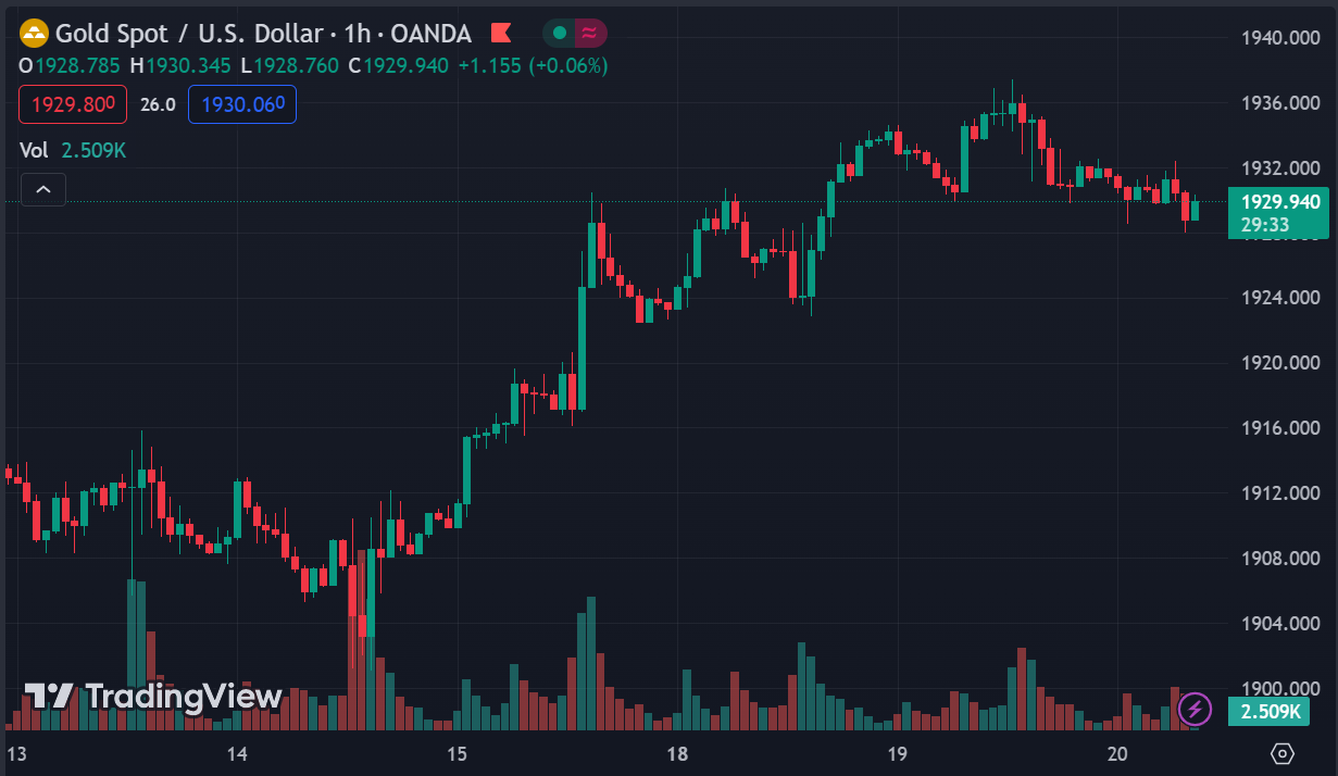 Cập nhật thị trường: Vàng giao dịch quanh $1,929