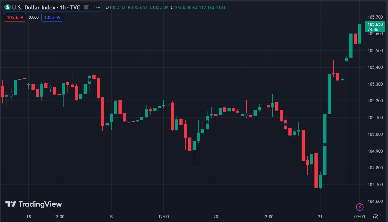 DXY chạm đỉnh kể từ đầu tháng 3, hiện ở 105.65