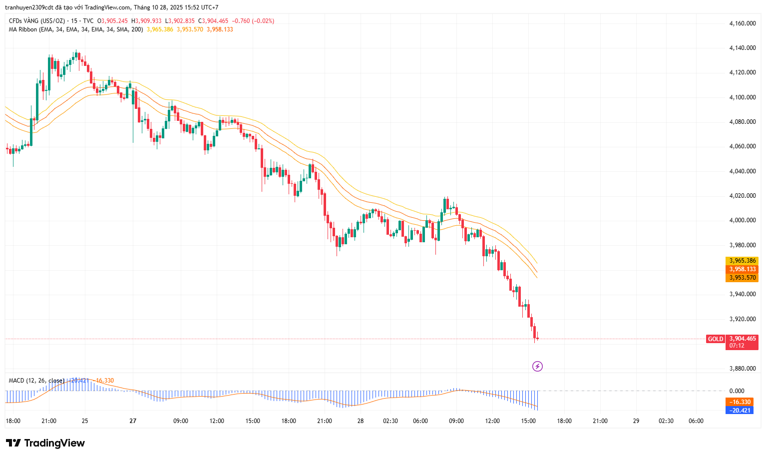 Về kỹ thuật, giá vàng đã xuyên thủng các đường trung bình động ngắn hạn quan trọng. Các mốc hỗ trợ đáng chú ý gồm 3,972 USD (Fib 38.2%), 3,846 USD (Fib 50%) và 3,720 USD (Fib 61.8%). Trong trường hợp điều chỉnh sâu hơn, vùng 3,566 USD — tương ứng với đường trung bình động 100 ngày — sẽ là ngưỡng được giới đầu tư theo dõi sát sao.