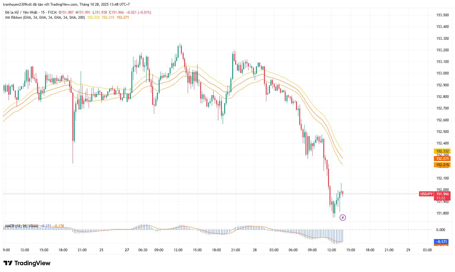 Nếu mốc này được giữ vững, phe mua có thể quay trở lại để hướng giá lên vùng 154.80, trong khi nếu 151.00 bị xuyên thủng, áp lực giảm có thể mở rộng về khu vực 148.50.