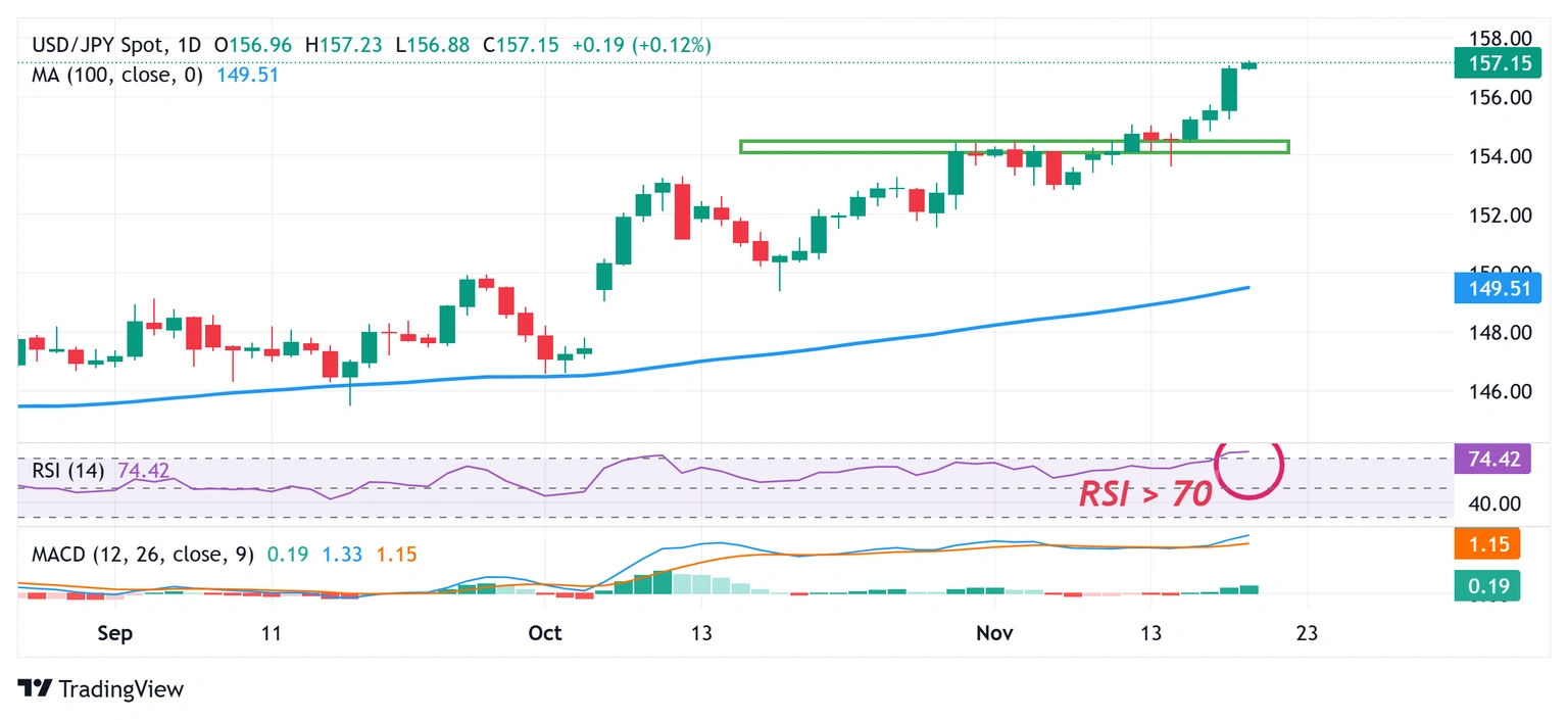 Phân tích kỹ thuật: USD/JPY cần củng cố trước khi tăng tiếp giữa RSI khung ngày hơi quá mua