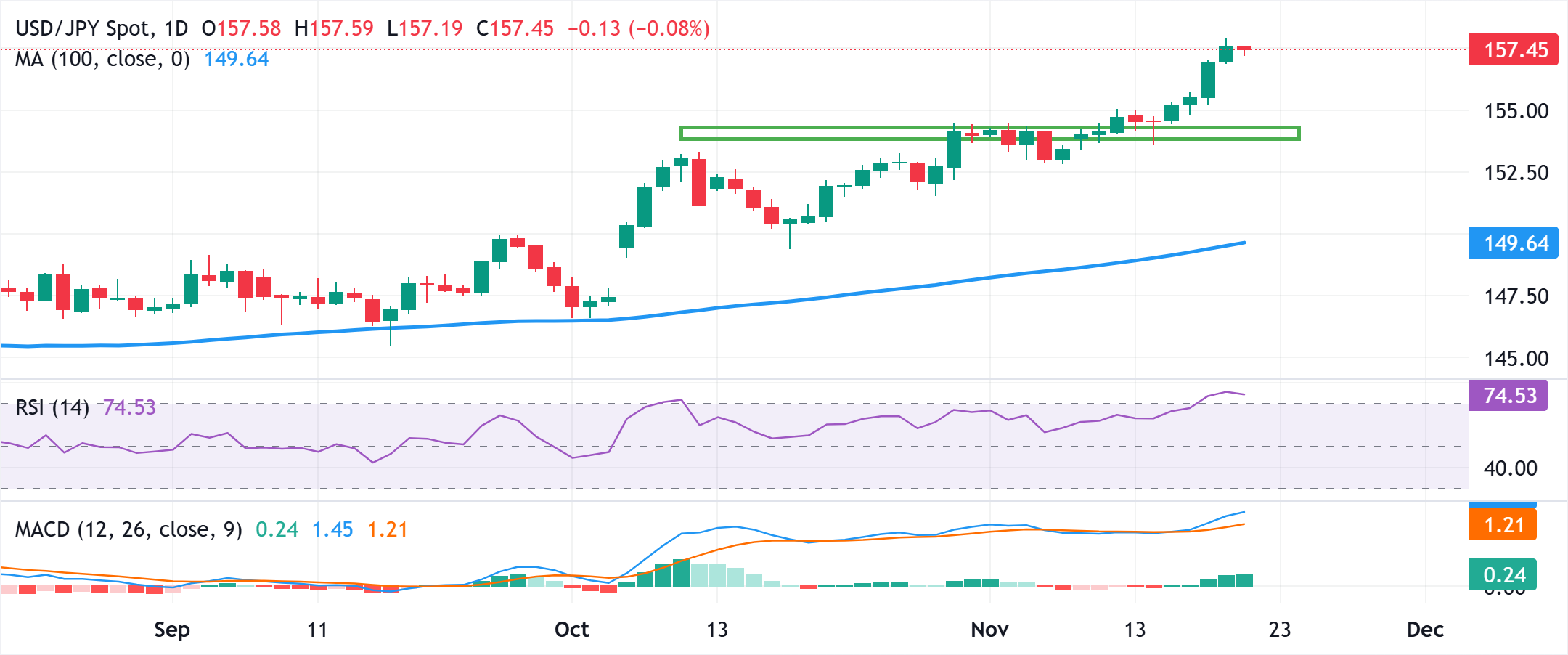 Phân tích kỹ thuật: USD/JPY cần củng cố trước đợt tăng tiếp theo khi RSI khung ngày quá mua