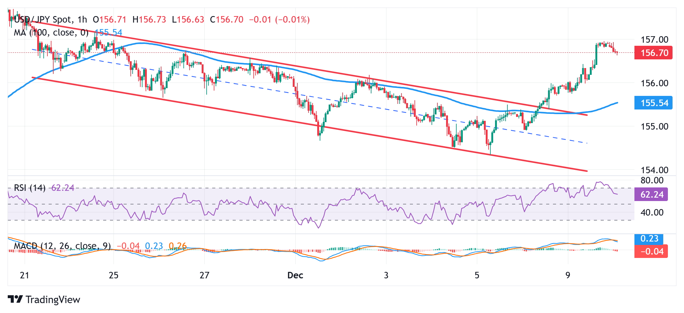 Tuy vậy, lo ngại liên quan đến định hướng tài khóa mở rộng của Nhật Bản và triển vọng tăng trưởng vẫn có thể khiến nhà đầu tư do dự trong việc mở rộng vị thế với JPY. Giới đầu tư cũng chờ kết quả cuộc họp FOMC kéo dài hai ngày diễn ra hôm nay nhằm tìm thêm tín hiệu về lộ trình cắt giảm lãi suất của Fed. Trong khi đó, kỳ vọng Fed tiếp tục nới lỏng chính sách đang khiến USD duy trì yếu quanh đáy kể từ cuối tháng 10 và trở thành lực cản đối với cặp USD/JPY. Dù vậy, cần sự xuất hiện rõ ràng của lực bán mạnh trước khi xác nhận rằng cặp tiền tệ đã thiết lập đỉnh.