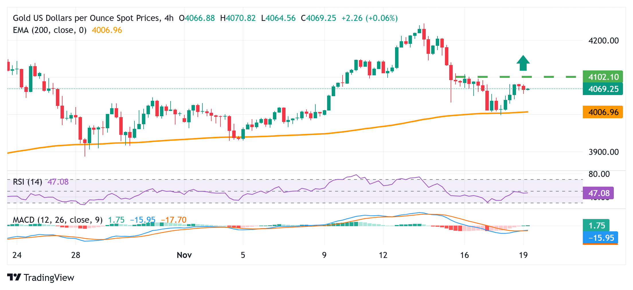 Ngược lại, vùng 4,037–4,036 USD có thể đóng vai trò hỗ trợ ban đầu, nằm ngay phía trên đường EMA 200 kỳ trên biểu đồ 4 giờ, vốn đang neo sát mốc 4,000 USD. Một cú phá vỡ thuyết phục xuống dưới khu vực này có thể khiến vàng dễ bị tổn thương hơn và mở ra khả năng giảm nhanh về hỗ trợ 3,931 USD, trước khi tiếp tục lùi về mốc 3,900 USD và vùng đáy cuối tháng 10 quanh 3,886 USD.