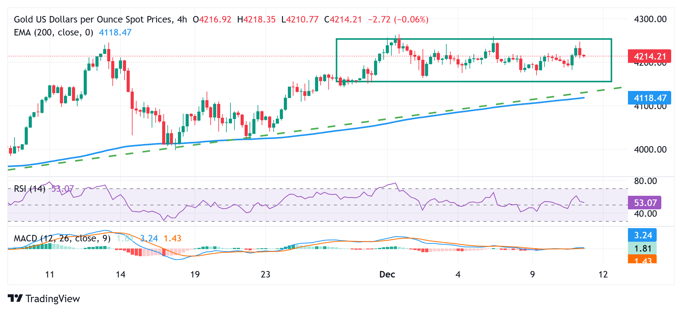 Những bất ổn địa chính trị từ cuộc chiến Nga–Ukraine cũng hỗ trợ vàng giữ trên $4,200. Hành động giá bị giới hạn trong khoảng hai tuần đòi hỏi sự thận trọng trước khi đặt cược giảm mạnh quanh XAU/USD. Các nhà giao dịch hiện theo dõi dữ liệu Yêu cầu Trợ cấp Thất nghiệp và Cán cân Thương mại Mỹ để tìm động lực mới.