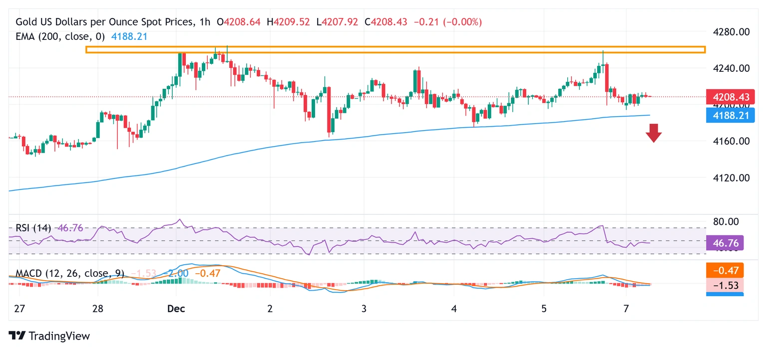 Ở chiều ngược lại, khu vực 4,250-4,260 USD tiếp tục đóng vai trò rào cản mạnh. Sức mạnh bền vững vượt qua mức này có thể nâng giá vàng tới kháng cự tiếp theo gần 4,277-4,278 USD, trước khi nhắm tới mốc 4,300 USD. Một số hoạt động mua tiếp theo sẽ được xem là tín hiệu chính cho nhà giao dịch tăng giá XAU/USD, mở đường cho xu hướng tăng tiếp tục từ mức đáy cuối tháng 11.