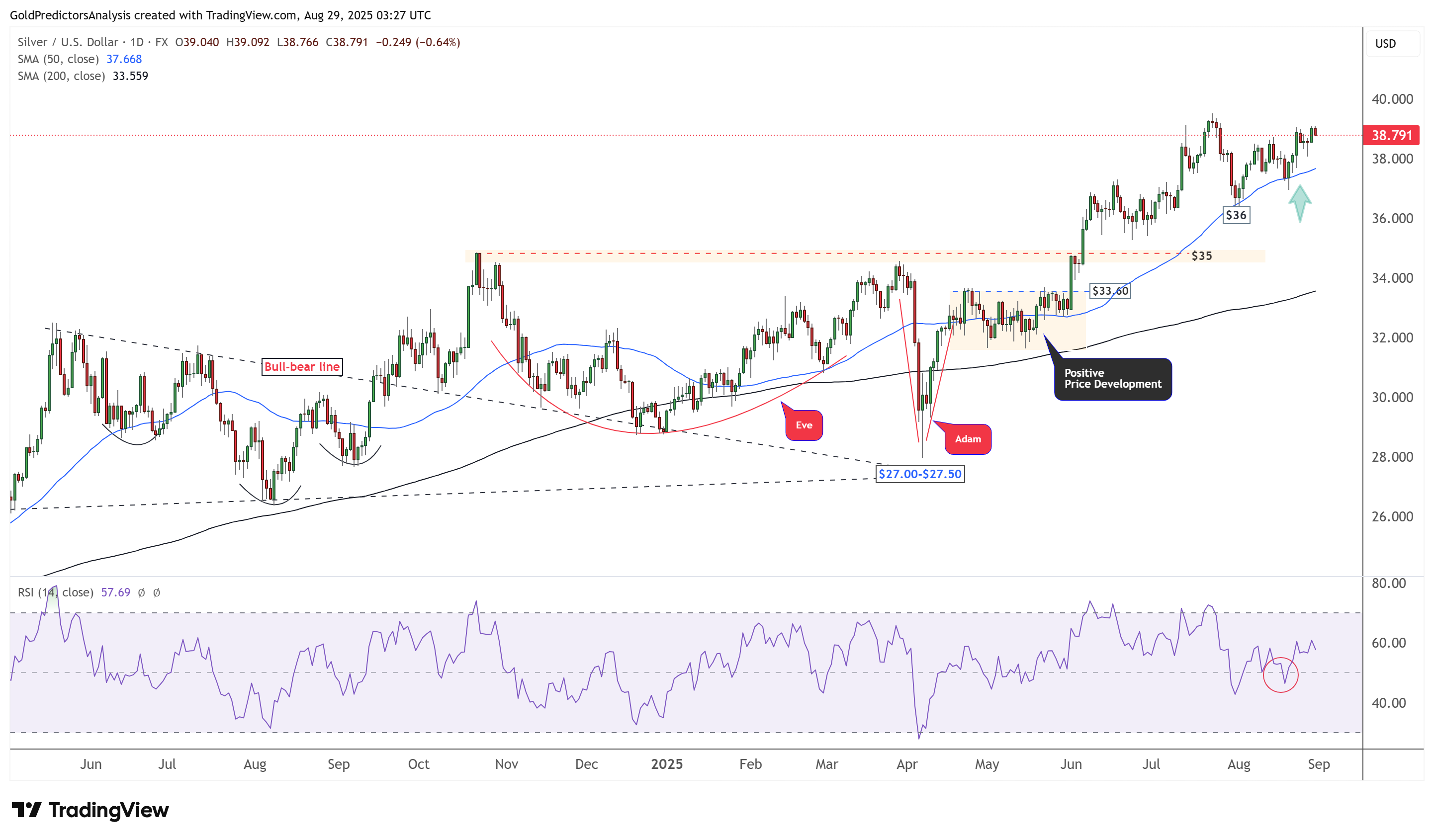 Biểu đồ ngày XAGUSD – Diễn biến giá tích cực