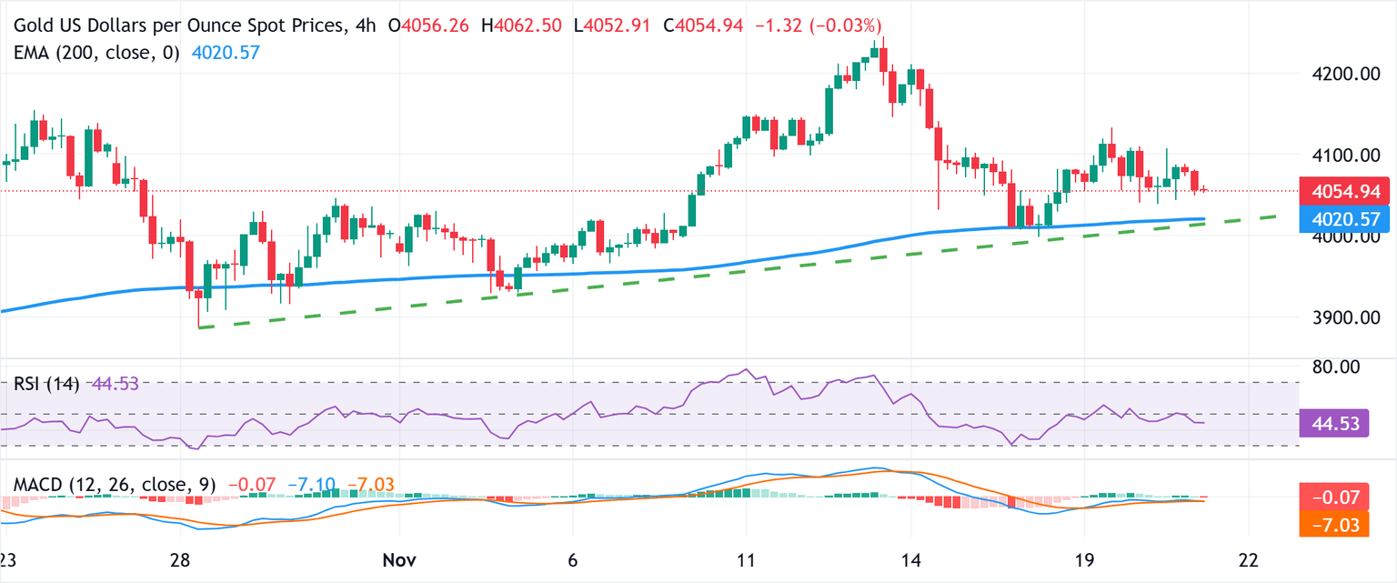 Cùng lúc, đồng USD tạm chững lại đà tăng gần đây quanh mức cao nhất kể từ tháng 5, trong bối cảnh xuất hiện lo ngại về đà giảm tốc kinh tế khi Mỹ trải qua giai đoạn đóng cửa chính phủ dài nhất từ trước đến nay. Ngoài ra, tâm lý yếu hơn trên thị trường chứng khoán toàn cầu cũng hỗ trợ cho vàng – tài sản trú ẩn an toàn. Điều này khiến những người bán XAU/USD cần thận trọng hơn và hạn chế kỳ vọng vào một nhịp giảm sâu ngay trong ngắn hạn.