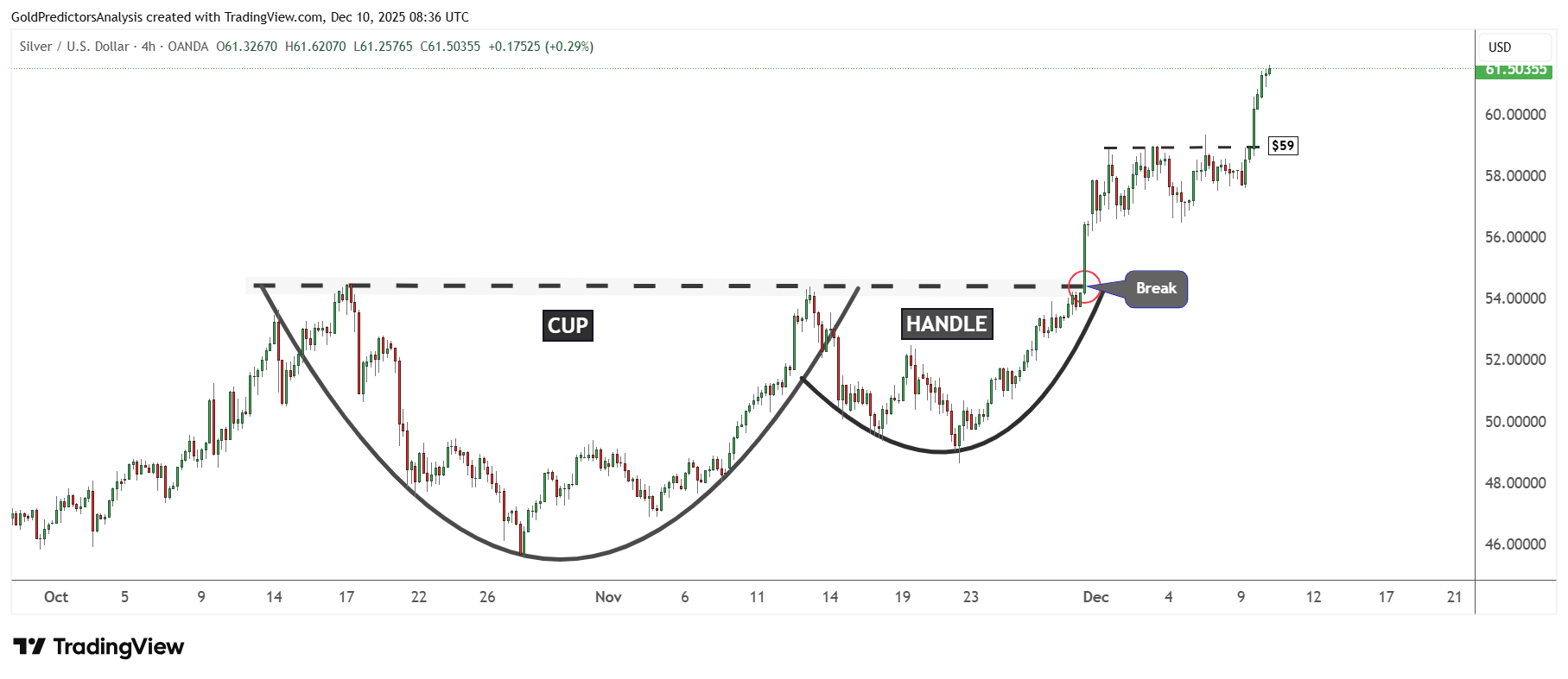 Bạc hiện là tài sản mạnh nhất trong nhóm kim loại tiền tệ. Việc vượt 59 USD cùng với cấu trúc tăng giá cho thấy sự khởi đầu của xu hướng dài hạn mới.