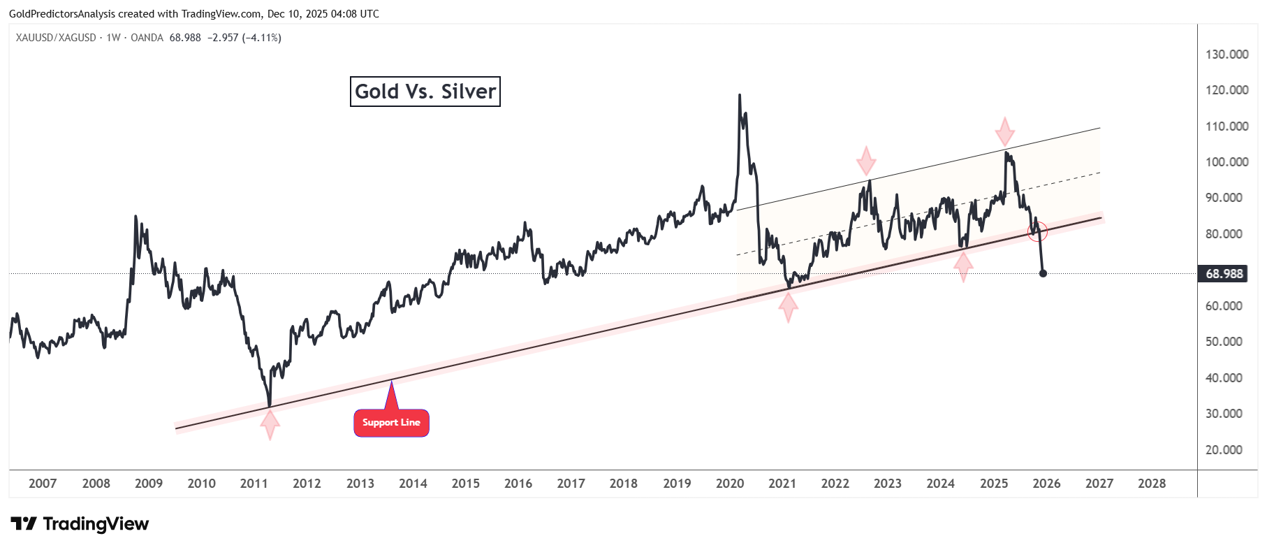 Việc vượt mốc kháng cự 4,380 USD sẽ mang tính quyết định, có thể mở ra đợt tăng mới hướng về vùng 5,000 USD. Bên cạnh đó, tỷ lệ vàng trên bạc đã phá vỡ hỗ trợ dài hạn, báo hiệu triển vọng tích cực cho toàn ngành kim loại. Khi bạc dẫn dắt, vàng thường đi theo.