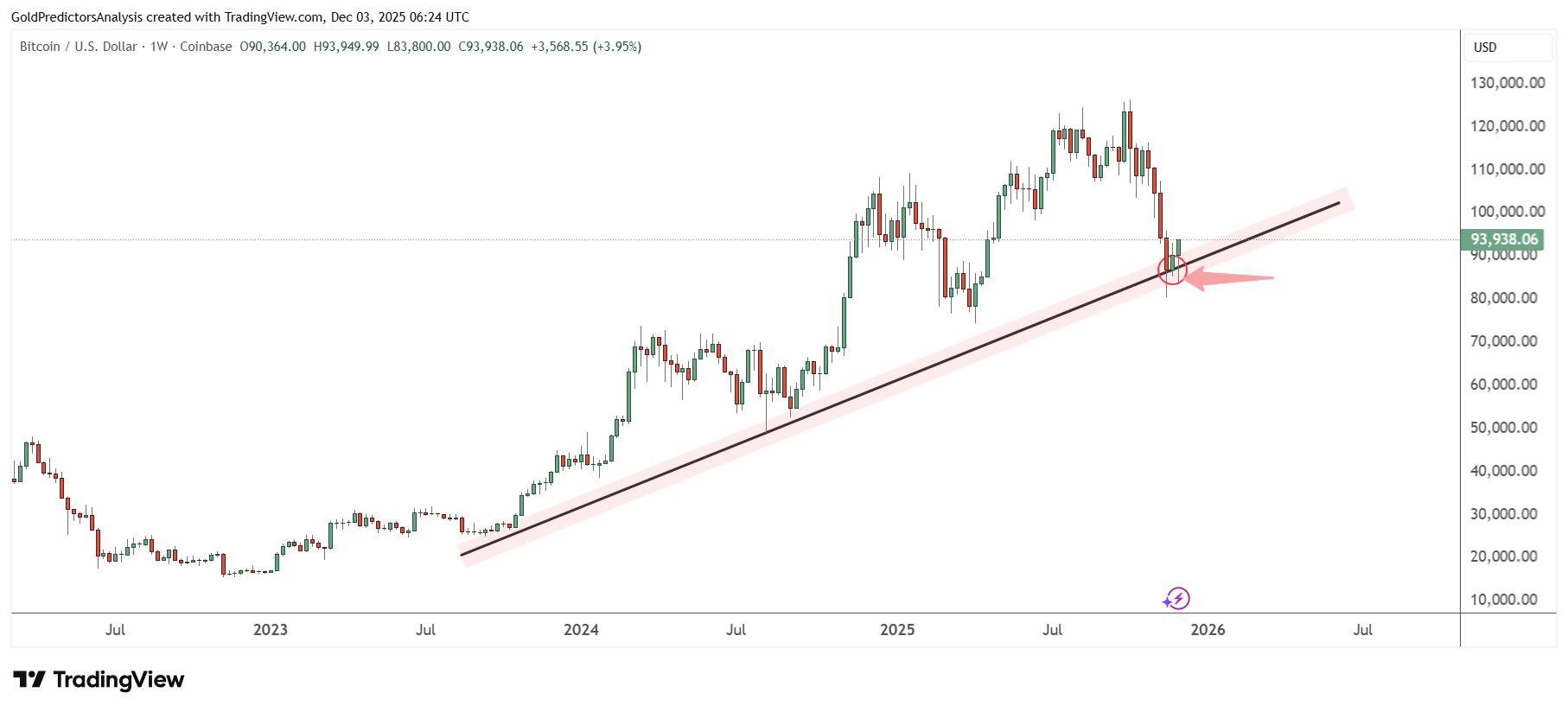 Dù giảm mạnh trong 2025, xu hướng tổng thể của Bitcoin vẫn tích cực khi đường tăng từ 2023 chưa bị phá vỡ. Nhịp điều chỉnh hiện tại có thể thu hút dòng tiền bắt đáy mới, hỗ trợ giá phục hồi.
