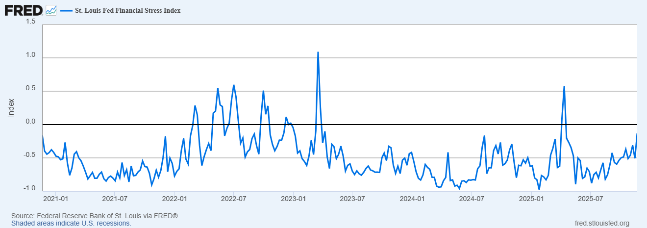 Chỉ số Áp lực Tài chính của Fed St. Louis cũng đang tiến gần về mức zero, cho thấy áp lực trong hệ thống đang tăng lên.
