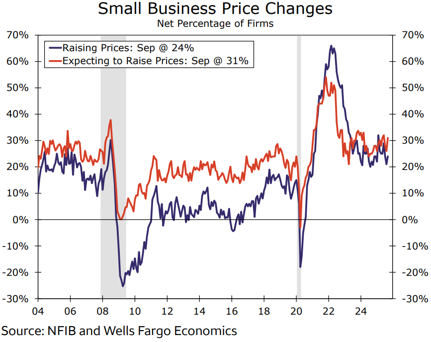 Tỷ lệ doanh nghiệp báo cáo tăng giá bán trung bình nhích lên trong tháng 9, cùng với tỷ lệ doanh nghiệp dự kiến sẽ tăng giá trong thời gian tới. Mức tăng hàng tháng của cả hai chỉ số này đã đảo ngược xu hướng giảm của tháng trước. Nhìn chung, áp lực lạm phát tại các doanh nghiệp nhỏ vẫn duy trì ở mức cao, nhưng chưa có dấu hiệu cho thấy đà tăng giá đang tăng tốc mạnh.