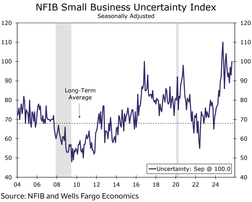 Dù các doanh nghiệp nhỏ đã duy trì tâm lý bi quan trong phần lớn năm nay, chỉ số bất định lại tăng lên mức cao nhất kể từ tháng 2, cho thấy nguy cơ chính phủ liên bang đóng cửa có thể đã ảnh hưởng tiêu cực đến tâm lý chung.