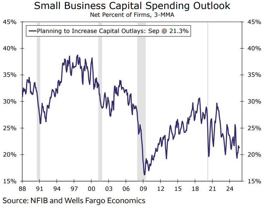 Kế hoạch đầu tư vốn của các doanh nghiệp nhỏ gần như không thay đổi trong tháng 9. Nhìn chung, hoạt động đầu tư vẫn trầm lắng khi chi phí vốn cao và sự bất định liên quan đến thay đổi chính sách kinh tế tiếp tục kìm hãm các quyết định đầu tư mới.